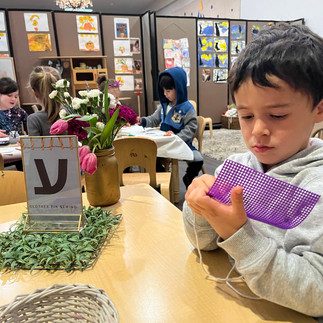 Our Hebrew letter for the week was Ayin, and we practiced sewing Ayins using safety needles and thread.