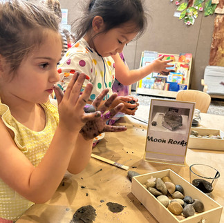 On Monday we made moon rocks with baking soda, paint and glitter. They were like like our own shiny souvenirs from outer space.