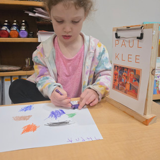 We created art inspired by Paul Klee to represent the different shapes of the planets and stars.